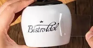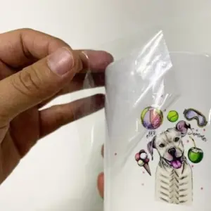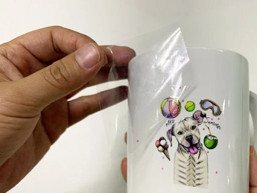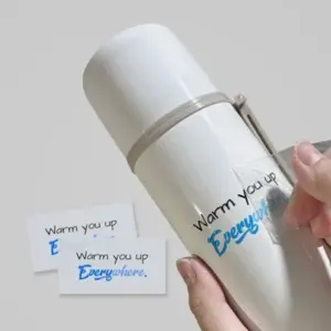 In bằng chất liệu decal nhựa trong suốt, khi dán lên sản phẩm như chai lọ, ly cốc...